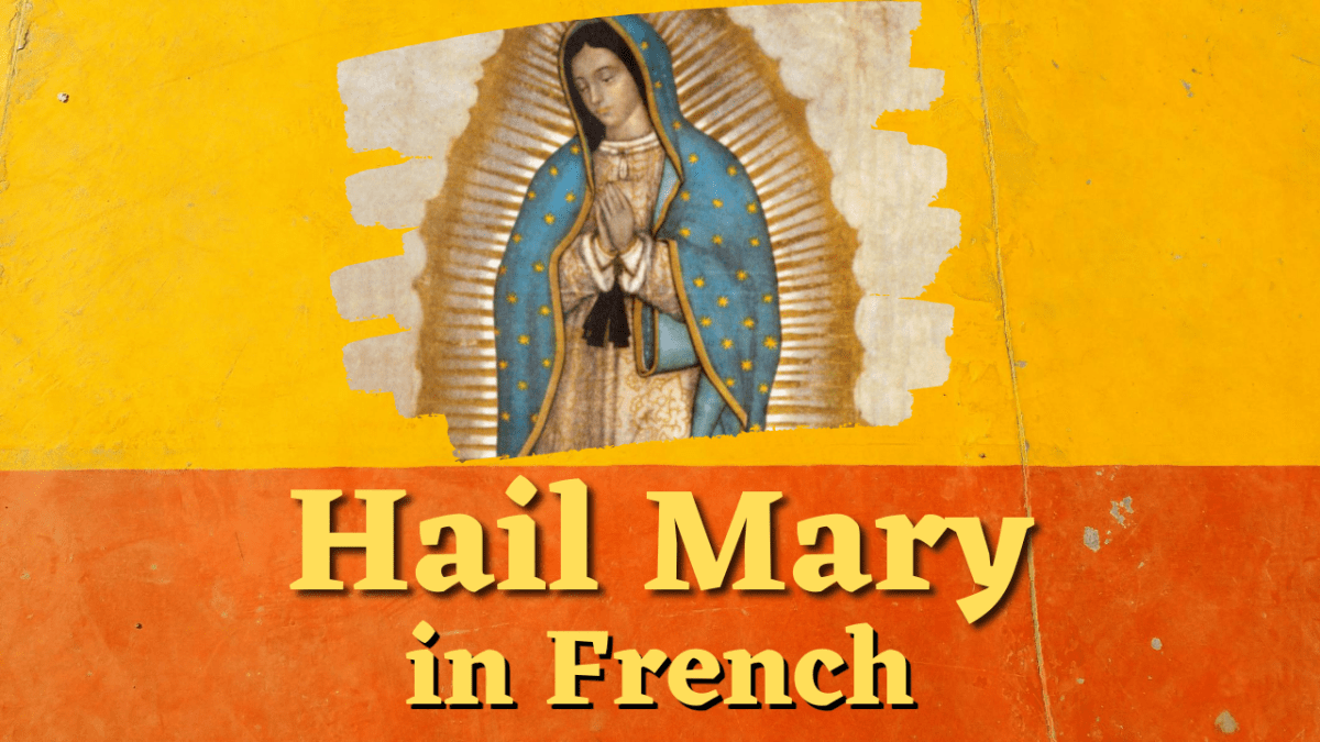 This page teaches the Hail Mary in French. A prayer video is also provided in which the prayer is recited twice: once at a normal speaking pace; the second time at a slower pace with emphasis on the French pronunciations.